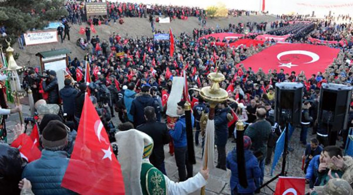 ERKHABER / ERZURUM - OSMANLI- Rus Savaşı'nda Erzurum halkının taş, sopa ve baltalarla geri aldığı Aziziye Tabyaları'ndaki destana tanık olmak için sabah namazında düzenlenen etkinliğe, her yıl olduğu gibi bu yıl da binlerce Erzurumlu katıldı. Yaklaşık 10 bin kişi, atalarının izinde yürüdü.