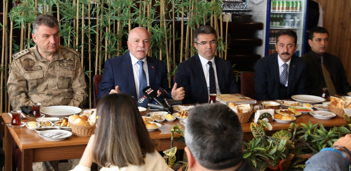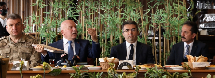 ERKHABER / ERZURUM - Erzurum Valisi Okay Memiş ve Erzurum Büyükşehir Belediye Başkanı Mehmet Sekmen’in düzenlediği basın toplantısında 60 çeşit ürüne sahip olan “Erzurum Kahvaltısı”nın tanıtımı yapıldı. Vali Okay Memiş, burada yaptığı değerlendirmede, Cumhurbaşkanlığı’nın himayesinde Erzurum Valiliği, Erzurum Büyüşehir Belediyesi ile Kültür ve Turizm İl Müdürlüğü’nün işbirliğinde hazırlanan projenin önemine vurgu yaptı.