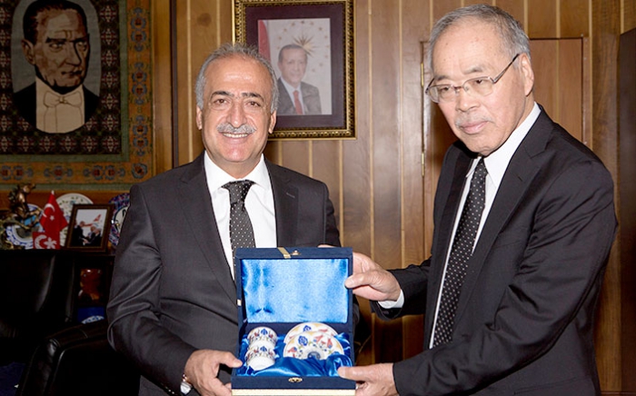 ERKHABER / ERZURUM - Atatürk Üniversitesi Mimarlık ve Tasarım Fakültesi tarafından organize edilen ve çok sayıda yerel yönetici, akademisyen ve öğrencilerin katıldığı Türkiye-Japonya Kültürel İş Birliği Kapsamında Müzecilikte İyi Deneyimlerin Paylaşılması paneline katılmak üzere Japonya’dan Erzurum’a gelen heyet, Rektör Prof. Dr. Ömer Çomaklı’yı ziyaret etti.