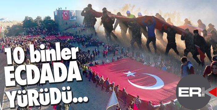 ERKHABER / ERZURUM - OSMANLI- Rus Savaşı'nda Erzurum halkının taş, sopa ve baltalarla geri aldığı Aziziye Tabyaları'ndaki destana tanık olmak için sabah namazında düzenlenen etkinliğe, her yıl olduğu gibi bu yıl da binlerce Erzurumlu katıldı. Yaklaşık 10 bin kişi, atalarının izinde yürüdü.