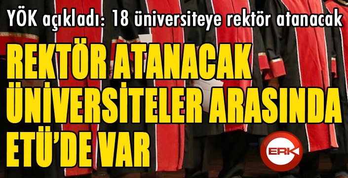 YÖK'ten yapılan duyuruya göre, 2547 Sayılı Yükseköğretim Kanunu'nun 703 sayılı Kanun Hükmünde Kararname ile değişik 13. maddesinin (a) fıkrası ve 3 sayılı "Üst Kademe Kamu Yöneticileri ile Kamu Kurum ve Kuruluşlarında Atama Usûllerine Dair Cumhurbaşkanlığı Kararnamesi" hükümleri ve "Rektör Adayı Olmak İsteyenlerin Başvurusuna İlişkin Usul ve Esaslar" uyarınca Ankara Yıldırım Beyazıt Üniversitesi, Aydın Adnan Menderes Üniversitesi, Balıkesir Üniversitesi, Bursa Teknik Üniversitesi, Erzurum Teknik Üniversitesi, Gaziantep Bilim ve Teknoloji Üniversitesi, Hatay Mustafa Kemal Üniversitesi, İstanbul Medeniyet Üniversitesi, İzmir Yüksek Teknoloji Enstitüsü, Kafkas Üniversitesi, Kahramanmaraş İstiklal Üniversitesi, Kocaeli Üniversitesi, Manisa Celal Bayar Üniversitesi, Mersin Üniversitesi, Mimar Sinan Güzel Sanatlar Üniversitesi, Necmettin Erbakan Üniversitesi, Sivas Bilim ve Teknoloji Üniversitesi ve Tokat Gaziosmanpaşa Üniversitesine rektör ataması yapılacak.
