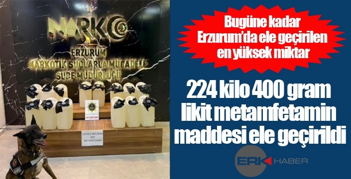 ERKHABER / ERZURUM - Bugüne kadar Erzurum'da en yüksek miktardaki metamfetamin maddesi ele geçirildi. Narkotik madde arama köpeği MAGNUM ile yürütülen titiz çalışma sonucu 224 kilo 400 gram likit metamfetamin maddesi ele geçirildi.