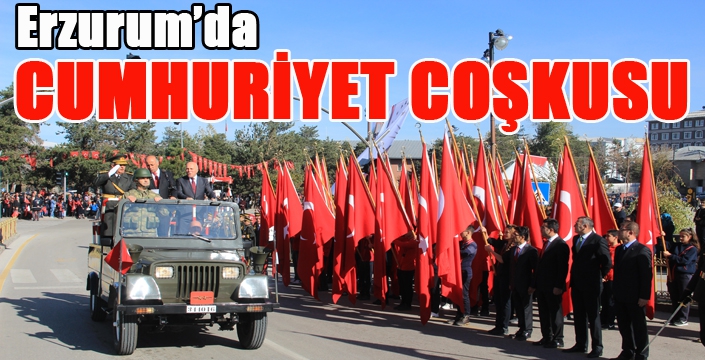 Erzurum Valisi Seyfettin Azizoğlu'nun makamında tebrikleri kabul etmesiyle başlayan kutlamalar, Havuzbaşı Kent Meydanı'nda düzenlenen törenle devam etti.