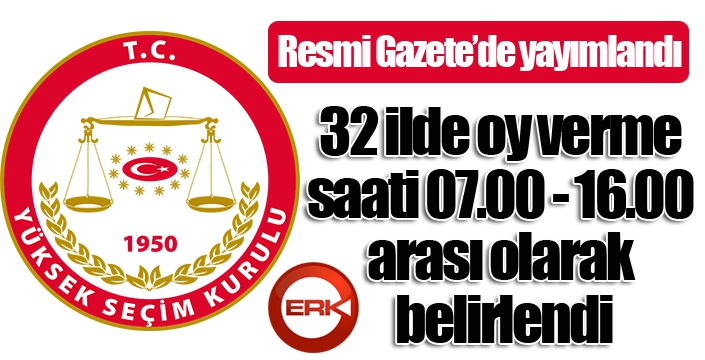 Resmi Gazete'de yayımlanan YSK Kararına göre, Adıyaman, Ağrı, Artvin, Bingöl, Bitlis, Diyarbakır, Elâzığ, Erzincan, Erzurum, Gaziantep, Giresun, Gümüşhane, Hakkâri, Kars, Malatya, Kahramanmaraş, Mardin, Muş, Ordu, Rize, Siirt, Sivas, Trabzon, Tunceli, Şanlıurfa, Van, Bayburt, Batman, Şırnak, Ardahan, Iğdır ve Kilis illerinde oy verme başlangıç ve bitiş saatleri 07.00 - 16.00 arası olarak belirlendi. Bu kararın alınmasında güneşin doğuş ve batış saatlerindeki farklılıkların dikkate alındığı ifade edildi.