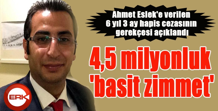 Erzurum 2'nci Ağır Ceza Mahkemesi'nce Ahmet Eslek hakkındaki gerekçeli karar açıklandı. Hazırlanan gerekçeli kararda, Bankacılık Kanunu 160/2 maddesi birinci fıkrada yer alan suçun ağırlaştırıcı nedenine yer verildiği hatırlatıldı. Bu maddeye göre, "Suçun, zimmetin açığa çıkmamasını sağlamaya yönelik hileli davranışlarla işlenmesi halinde faile 12 yıldan az olmamak üzere hapis ve 20 bin güne kadar adli para cezası verilir" denildiği anımsatılan gerekçeli kararda şöyle denildi: