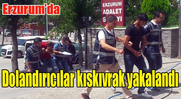 ERKHABER / ERZURUM - Erzurum’da bir ev kadınını telefonla arayarak hesabının terör örgütünün eline geçtiğini söyleyerek 40 bin TL değerindeki altın ve paralarını alan dolandırıcılar, kaçamadan kıskıvrak yakalandı. Zanlılardan birinin çeşitli suçlardan 40 sabıkası olduğu ortaya çıktı.
