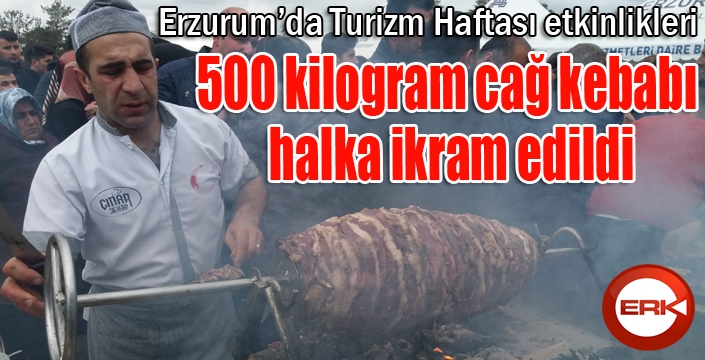 Erzurum Kültür ve Turizm İl Müdürü Cemal Almaz, “43. Turizm Haftası kutlamaları dolayısıyla şu an etkinliklerin artık son gününe gelmiş bulunuyoruz. Bir Cumartesi gününden vatandaşlara hizmet ettiğimiz cağ kebap şöleni ile günü ve haftayı da bitirmiş oluyoruz. Özellikle Turizm Haftası etkinlikleri kapsamındaki cağ kebap şölenini son güne bıraktık. Bilindiği gibi cağ kebabı Türkiye gündemindedir. Cağ kebabı lezzetimiz dünyada bir tattır. İşte o işin uzmanları ile birlikte el birliği yaparak vatandaşlara hizmet etmeye odaklandık ve Erzurum Kent Meydanında buluştuk. Ustalar derki bu işi Türkiye’de en iyi biz yapıyoruz, biz yapacağız, bizden başkaları da yapamaz diyorlar ve yanımızda bulunuyorlar. Cağ Kebabı lezzetini bizzat icra ederek bizlere gösteriyorlar, buraya gelen vatandaşlara da ikramlarda bulunacaklar. Vatandaşların eğlenmeleri için folklorik öğeler de getirdik. Gençlik Hizmetleri ve Spor İl Müdürlüğü’nce meydanda mini sahalar oluşturarak gençlere ve vatandaşlara spor konusu aşılamak ve kitap dağıtımında bulunmak için bizlerin yanında oldular. Türkiye’nin gündemine de cağ kebabını böylelikle tekrar getirmiş olacağız. Cağ kebap Erzurum’da yapılır. Cağ Kebap Erzurum’da yenilir. Cağ Kebabının en kalitelisi de Erzurum’da bulunur” diye konuştu.