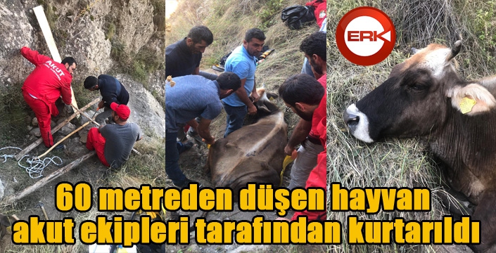 Edinilen bilgilere göre, Şenkaya ilçesi Gözalan köyü kırsalında otlatılmaya çıkarılan sürüden Muhsin Atmaca adlı vatandaşın ineği kayalık alana gitti. Buradan uçuruma atlayan hayvan yaklaşık 60 metreden şans eseri yumuşak toprak üzerine düştü. Mahsur kalan hayvanı bulundukları yerden köylüler ve akut ekipleri kurtardı.