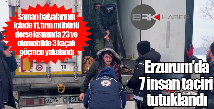 ERKHABER / ERZURUM - Erzurum'da polisin yaptığı denetimlerde bir tırın mühürlü dorse kısmında 23, kamyonet aracın kasa kısmında saman balyalarıyla gizlenmiş vaziyette 11 ve otomobil içinde 3 kaçak göçmen yakalandı.