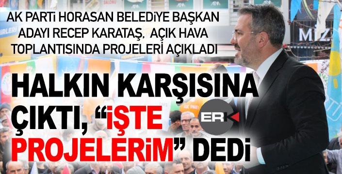 ERKHABER / ERZURUM - Horasan'da Meydanda yapılan toplantıda binlerce kişiye seslenen AK Parti Horasan Belediye Başkan Adayı Recep Karataş, Ulaşımdan sağlığa, spordan kültür ve sanata, altyapı ve sanayiye birçok alanda hazırladığı projelerini hemşerileriyle paylaştı.
