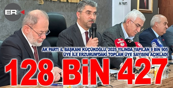 ERKHABER / ERZURUM - AK Parti Erzurum İl Başkanı İbrahim Küçükoğlu, parti il binasında düzenlediği basın toplantısında, partisine 2025 yılı içerisinde 9 bin 905 kişinin üyelik kaydının yapıldığını açıkladı. Kent genelinde toplam 128 bin 427 kişinin AK Parti üyesi olduğuna dikkat çeken Küçükoğlu, “Erzurum’un 510 bin civarında seçmeni olduğunu düşünürsek, seçmenin yüzde 20’sinin AK Parti’ye kayıtlı olduğu gerçeğini gözler önüne sermiş oluyoruz” dedi.
