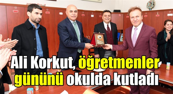 Yakutiye Belediye Başkanı Ali Korkut ile Ak Parti Yakutiye İlçe Başkanı Recep Aydın, öğretmenler günü nedeniyle öğretmenlerin gününü okullara giderek kutladılar. Gazi Ahmet Muhtar Paşa Ortaokulunu ziyaretlerinde Ali Korkut ve Recep Aydın'ı Okul Müdrü Şanal Rüştü Akal ve öğretmenler karşıladı. Korkut'a burada öğrenciler tarafından çiçek verildi. Ardından okulda düzenlenen 'Öğretmenler Gnüü' etkinliğine iştirak eden Korkut ve Aydın, öğrencilerden oluşan korunun söylediği "Sen Varsın Öğretmenim" isimli şiiri ve öğretmen temalı dinletiyi Şanal Akal ile birlikte dinlediler. Ali Korkut ve Recep Aydın, öğretmenlerin gününü kutlarken, çiçek verdiler. Okul öğretmenleri ise bu önemli günde kendilerini unutmayan Başkan Korkut'a plaket sundular.
