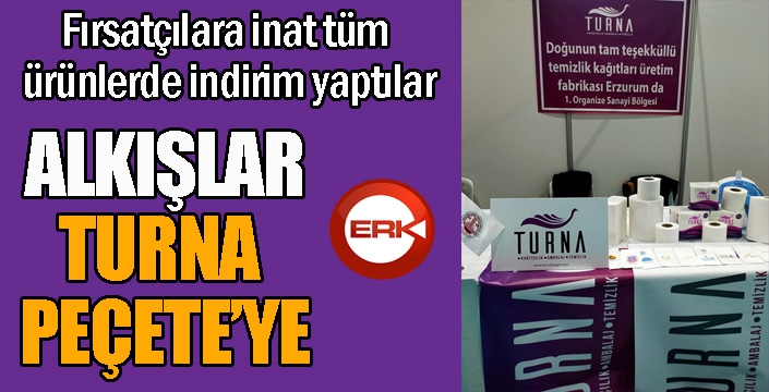İlk resmi koronavirüs vakasının Türkiye’de görüldüğünün açıklanması, fırsatçıları da harekete geçirmiş başta kolonya olmak üzere tüm temizlik malzemelerine astronomik zamlar uygulanmaya başlanmıştı. Erzurum’da temizlik ürünleri üretimi yapan Turna Peçete ise fırsatçılara inat ürünlerinde indirim yapma kararı aldı. Firma yetkilileri ise sosyal medya hesaplarından birlik ve beraberlik mesajları vererek tüm ürünlerde indirime gittiklerini açıkladılar.