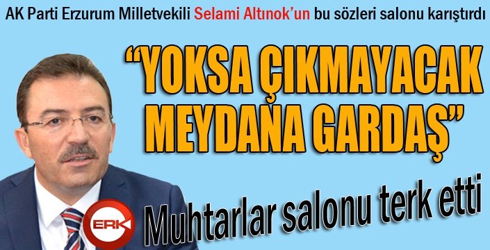 Muhtarların talep ve şikâyetlerini dile getirdiği esnada Milletvekili Selami Altınok’un "her idarecinin görev sınırları belli, herkes üzerine düşeni yapacak, şayet iş makineniz yoksa çıkmayacaktınız meydana"sözleri üzerine salon bir anda karıştı. Oltu Belediye Başkan Yardımcısı Temel Demir ve Büyük Birlik Partisi(BBP) Büyükşehir Encümeni Hikmet Dağ’ın tepki göstermesi üzerine salonda tartışma çıktı.