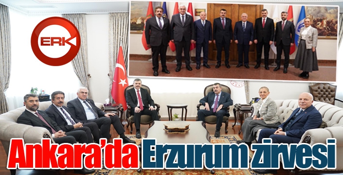 ERKHABER / ERZURUM - Ankara’daki ilk Erzurum zirvesi Milli Eğitim Bakanlığı’nda oldu. Vali Mustafa Çiftçi, Ak Parti Erzurum Milletvekilleri Fatma Öncü, Mehmet Emin Öz, Abdurrahim Fırat, Erzurum Büyükşehir Belediye Başkanı Mehmet Sekmen ve Ak Parti Erzurum İl Başkanı İbrahim Küçükoğlu, Milli Eğitim Bakanı Yusuf Tekin’i makamında ziyaret etti.