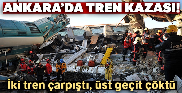 ERKHABER / ERZURUM - Ankara-Konya seferini yapan Yüksek Hızlı Tren'in Yenimahalle ilçesine bağlı Marşandiz istasyonunda banliyö treni ile çarpıştı.İki vagonu devrildi. Çarpışmanın etkisi ile üst geçit çöktü. Bölgeye çok sayıda ambulans ve itfaiye ekibi gönderildi.