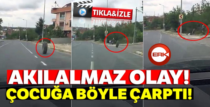 Sosyal medyadan paylaşılan feci görüntülerde hızla yuvarlanan bir lastik önce kaldırıma çarpıyor. Çarpmanın etkisiyle sekerek hızlanan lastik, annesi ile birlikte kaldırımda bekleyen çocuğa yöneliyor. Anne son bir hamle ile hem kendini hem çocuğunu lastikten kurtarmaya çalışıyor ancak başarılı olamıyor. Lastiğin çarptığı çocuk yere savruluyor.