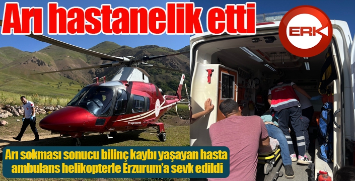Olay, Yedisu ilçesine bağlı Kaşıklı Dağı yaylasında meydana geldi. Edinilen bilgiye göre, 47 yaşındaki Tekin Doğan, arı sokması sonucu alerjik reaksiyon ve bilinç kaybı yaşadı. Ailesi durumu sağlık ekiplerine bildirdi. Bölgeye güçlükle giden ekipler, hastanın durumunun kritik olduğunu görünce bakanlıktan ambulans helikopter talebinde bulundu. Ardından bölgeye hızlı bir şekilde ambulans helikopter sevk edildi. Doğan, helikopter ile Erzurum Şehir Hastanesi’ne götürülerek tedavi altına alındı.