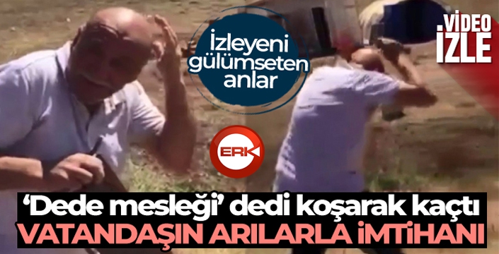 ERKHABER / ERZURUM - Erzurum'da bir vatandaş hiçbir önlem almadan arılarla dolu olan bal peteğini eline aldı. Bu iş dede mesleği diyerek peteği elinde tutan vatandaş bir anda kızgın arıların saldırısına uğradı. ‘Beni yiyorlar' diyerek olduğu yerden hızla kaçan vatandaşın arılarla imtihanı izleyenleri ise güldürdü.