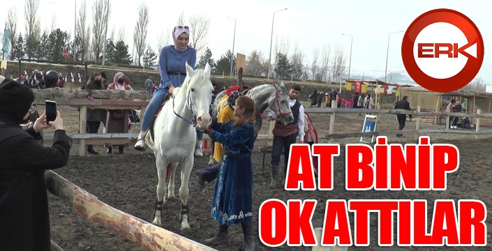 ERKHABER / ERZURUM - Erzurum Büyükşehir Belediyesi Kent Konseyi Kadın Meclisinin Öğretmenler Günü dolayısıyla Kızıl Elma Geleneksel Sporları ve Atlı Okçuluk otağında düzenlediği etkinlikte öğretmenler at binip ok attı.