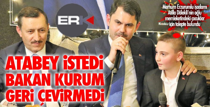 Bakan Kurum, etkinlikte yer alan, 11 yaşındaki Erzurumlu merhum Atilla Dölekli'nin oğlu, Atabey'in Erzurum’daki bir köy okulunun eksikliklerinin tamamlanması ricasını da geri çevirmedi ve eksikliklerin en kısa sürede giderileceğini belirtti.