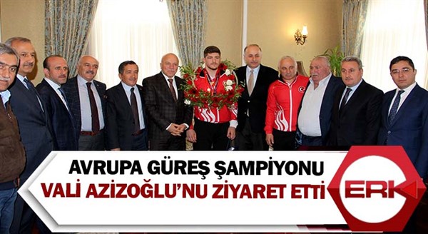 ERKHABER / ERZURUM- Macaristan’da düzenlenen Avrupa Güreş Şampiyonası’nda 86 kiloda Avrupa şampiyonu olan Murat Ertürk, Erzurum Valisi Seyfettin Azizoğlu’nu ziyaret etti.