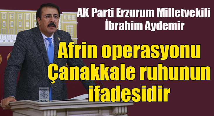 ERKHABER / ERZURUM - AK Parti Erzurum Milletvekili İbrahim Aydemir, ‘Afrin operasyonu, Çanakkale Ruhunun, Aziziye duruşunun, Kut’ül Amare destanın yeni ve muhteşem bir ifadesidir. Hakkın yardımı, Hz. Peygamberin duası bu milletin üzerindedir. Cenabı Hakk Milletimizi, Devletimizi, Ordumuzu daim muzaffer kılsın’ dedi.