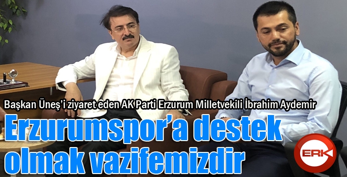 ERKHABER / ERZURUM - Milletvekili Aydemir, çalışma programı dahilinde Erzurumspor kulübünü ziyaret etti. Aydemir, ‘Erzurumsporumuzun genç ve başarılı başkanı Hüseyin Üneş’le takımımızı, çalışmaları, transferleri konuştuk. Süper lige tekrar döneceğimizden ve kalıcı olacağımızdan zerre şüphemiz yok. Destek olmak, takımımızın yanında olmak, bizim için en esaslı vazifedir. ‘ açıklamasını yaptı.
