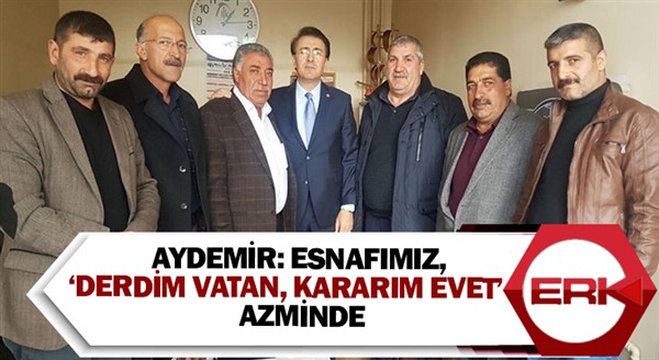 Ziyaretlerinde, yeni sistemin terörü tamamen bitirecek esasları ifade ettiği, bu sebeple ihanet şebekelerinin korku içinde hayır cephesinde birleştiğini bildiren Milletvekili Aydemir, Erzurum esnafının hiçbir sebep ve gerekçeyle hainlerle bir safta yer alamayacağını, milli imanla şer odaklarının karşısında duracağını, bunun dadaşlığın bir vecibesi olduğunu vurguladı.
