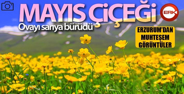 Erzurum'daki Konaklı Dağı ve Palandöken Dağları arasında kalan ve kent merkezine 25 kilometre uzaklıkta bulunan Yağmurcuk Mahallesinde baharın gelmesiyle filizlenen sarı renkli mayıs çiçekleri, ovaları sarıya boyadı.