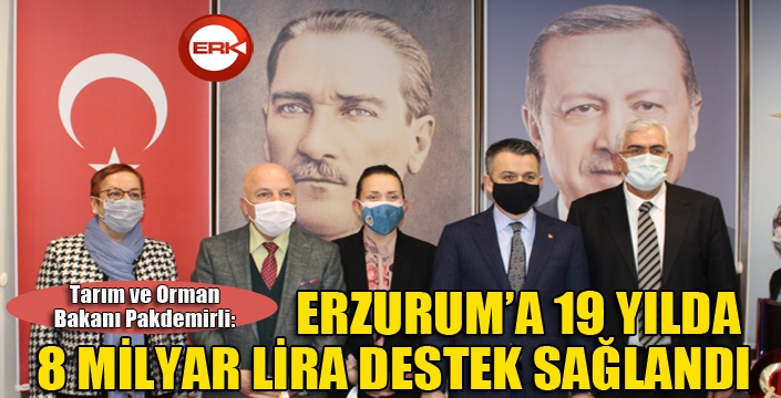 Bakan Pakdemirli, AK Parti hükümeti döneminde Erzurum’a 8 milyar lira destekte bulunduklarını da kaydederek, “19 yıla aşkın süredir Bakanlığımız tarafından Erzurum’a 8 milyar lira desteğimiz oldu. Son 3 yılda da 1.2 milyar lira desteğimiz olmuş. Kırsal kalkınma destekleri kapsamında 476 projeye 50 milyon lira hibe desteği yaptık. 167 bin dekar mera ıslahı yaptık. 106 milyon lira yem desteği, 9 milyon fidan diktik, 2 mesire yeri ve 1 bal ormanı yaptık.2 bin 500 gelir getirici fidan dikimi ayrıca 4 gölet 11 sulama tesisi yapıp, 23 bin dekar araziyi sulamaya açıp 14 taşkın koruma tesisini bu dönemde bitirdik. Mesele bunlarla bitmiyor 81 ile sabah namazından yatsı namazına kadar hizmet etmeye çalışıyoruz. Zaman çabuk geçiyor. 2023 seçimlerine doğru gidiyoruz. Ardından hemen Belediye seçimleri olacak. Ben herkesten söz istiyorum. Erzurum’da oylarımız iyi ama her Erzurumlunun bize oy vermesi için onların kapılarını çalıp onları ikna etmemiz gerekiyor“ şeklinde konuştu.