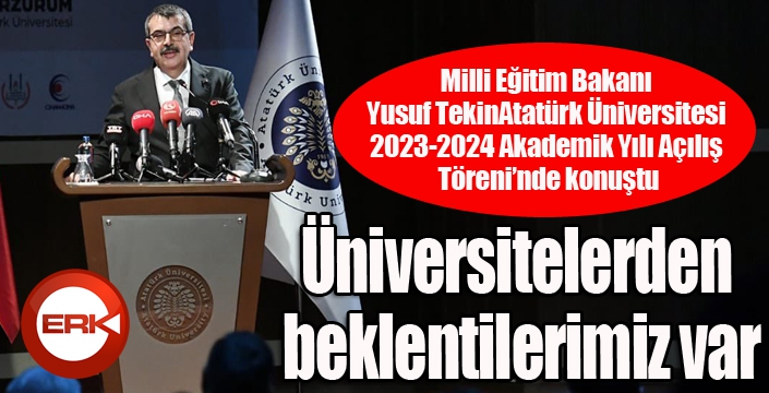 Milli Eğitim Bakanı Yusuf Tekin, Erzurum’da Atatürk Üniversitesi’nin 2023-2024 akademik yılı açılış törenine katıldı. Törenin açılışında konuşan Bakan Tekin, Filistin’de yaşanan dramla ilgili “Yaşananlarla ilgili herkes bir şeyler söylüyor herkes konuşuyor. Bugün burada Atatürk Üniversitesi’nde akademik yıl açılış programında buradaki akademisyen dostlarımızdan, Türkiye’deki ve İslam dünyasındaki akademisyenlerden bir istirhamım var. Bu vesileyle onu paylaşmak istiyorum. Dünyada barışı ve insan haklarını korumakla mükellef uluslararası yapılar var, BM gibi. Sonra insan haklarına ihlallere karşı tedbir almak üzere inşa edilmiş AHİM gibi uluslararası yargı mekanizmaları var. Bugünü kadar bunlar birçok kez birçok konuda birçok kez müdahil oldular. Ama ne yazık ki bu müdahale şekilleri İslam dünyasını doğu toplumlarını bizleri tatmin etmiyor. 80’li yıllarında Bulgaristan’da, Bosna’da yaşadıklarımız, Filistin’de. Bu uluslararası yapılan kılını kıpırdatmıyor. Rusya-Ukrayna savaşında aynı yapılan faaliyete geçti, Rusya’ya spordan sanata ticaretten ekonomiye her alanda yaptırımlar uyguladılar. Azerbaycan’da Ermenistan arasındaki haklı talepleri karşısında ortaya koyduğu tutum.