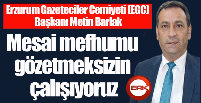 ERKHABER / ERZURUM - Erzurum Gazeteciler Cemiyeti (EGC) Başkanı Metin Barlak, 10 Ocak Çalışan Gazeteciler Günü nedeniyle yaptığı yazılı açıklamada, “Bilginin yayılımının arttığı dijital çağda yalan ve yanlış haberlerin yıldırım hızıyla yayılırken doğruya ulaşmanın ve doğrunun sesini yükseltmenin mücadelesini veriyoruz.” dedi.