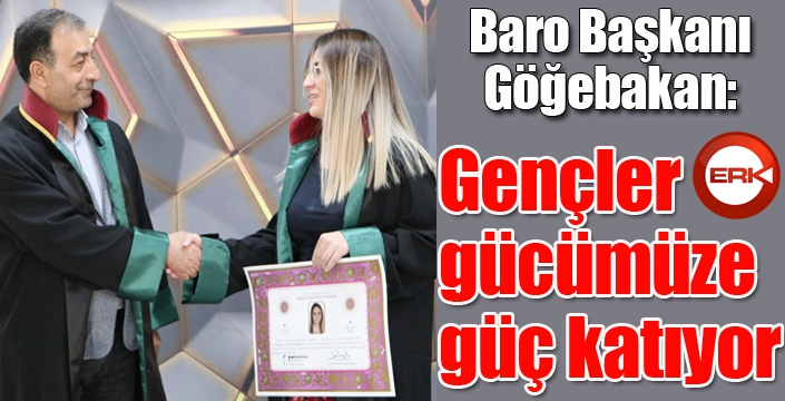 Yaptıkları hizmetlerle Türkiye’de kıskanılan bir baro haline geldiklerini belirten Başkan Göğebakan, "Göreve geldiğimiz ilk günden itibaren benimle birlikte görev alan yönetimi kurulu üyeleri ile gece- gündüz demeden çalışıp, Erzurum Barosunu hak ettiği yere getirdik. Genç avukatımız Ece Hilal Akpınar gibi stajını tamamlayıp aramıza katılan genç avukatlarda gücümüze güç katıyor" dedi