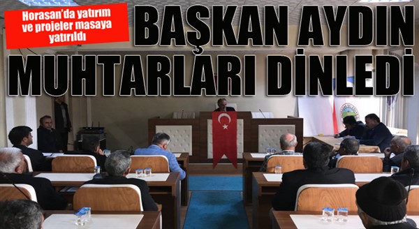 Aydın, “Horasan’da şehrimzin tüm mahallerinde belediye birimlerimizin çalışmaları devam ediyor. Rutin belediye hizmetlerinin yanında şehrimizi gelecek nesillere taşıyacak çok önemli projeleri de hayata geçiriyoruz. Kentimizi marka şehir haline getirmek için elbette vatandaşlarımızın görüş ve taleplerini de değerlendiriyoruz. Mahallelerin de vatandaşlarımızın sesi olan muhtarlarımızla toplantıların yeni yatırımlar ve hizmetler açısından önemli olduğunu biliyoruz. Katılımlarınızdan dolayı hepinize teşekkür ediyorum” dedi.