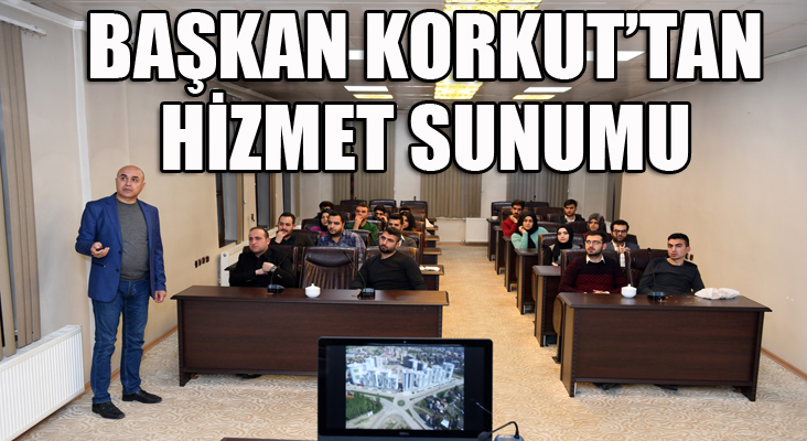 ERKHABER / ERZURUM - Erzurum Merkez Yakutiye İlçe Belediye Başkanı Ali Korkut, Ak Parti Yakutiye İlçe Gençlik Kollarına yaptığı hizmetler ve devam eden projeleriyle ilgili bilgilendirme toplantısı yaptı. Belediye Meclis Salonunda gerçekleştirilen sunumda 9 yıllık geniş bir hizmet yelpazesi yer alırken, Başkan Korkut'un özellikli projeleri üzerinde durularak anlatıldı. Ak Parti Yakutiye Gençlik Kolları Başkanı Mesut Abuşoğlu, yapılan sunum ve hizmetlerden dolayı Ali Korkut'a teşekkür etti.