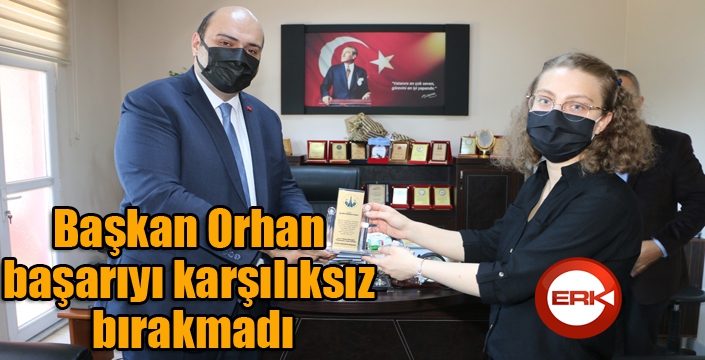Ziyaretin sonunda Başkan Orhan, Erzurum’a Dünya 4’üncülüğü kazandıran İdil Büyükgölcigezli’yi Cumhuriyet altını ile ödüllendirirken, Büyükgölcigezli’nin yanı sıra danışman hocası Dr. Şengül Tuğba Özeken Berber ile Remzi Sakaoğlu Bilim ve Sanat Merkezi Müdürü Uğur Elmas’a da teşekkür plaketi verdi.