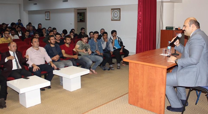 ERKHABER / ERZURUM - Türkiye Diyanet Vakfı Erzurum Yükseköğretim Erkek Öğrenci Yurdu tarafından 15 gün arayla şehrin önde gelen yöneticilerinin katılımı ile düzenlenen söyleşilerin konuğu olan Aziziye Belediye Başkanı Muhammed Cevdet Orhan, belediyecilik hizmetlerini anlattı.