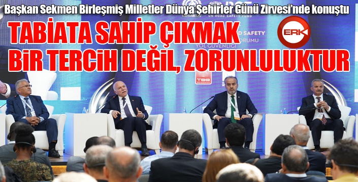 ERKHABER / ERZURUM - Erzurum Büyükşehir Belediye Başkanı Mehmet Sekmen, İstanbul’da düzenlenen Birleşmiş Milletler Habitat Dünya Şehirler Günü Zirvesi’ne katıldı. BM Habitat İcra Direktörü Maimunah Mohd Sharif ile bir araya gelen Başkan Sekmen, zirvedeki Uluslararası Belediye Başkanları Forumu’nda “Sıfır Atık ve çevre” ana temalı bir konuşma yaptı. Başkan Sekmen, burada yaptığı konuşmada, “Bilindiği gibi tabiat ve ekosistem; İlahi bir tecelli olarak biz insanlara emanet edilmiş, mikrodan makroya kadar sayısız popülasyonun yer aldığı canlı bir varlıktır.