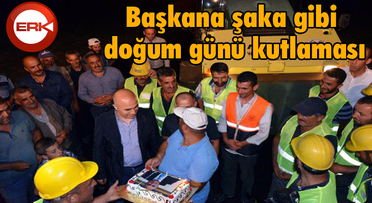 ERKHABER / ERZURUM - ERZURUM merkez Yakutiye Belediye Başkanı Ali Korkut'a, doğum gününde personeli tarafından şaka gibi bir kutlama yapıldı. Yardımcısının akşam vardiyasında çalışan işçilerden birinin asfalt plentinin altında kaldığını söylediği Başkan Korkut, olay yerine gittiğinde üzerinde resminin bulunduğu pastayı görünce şaşkına döndü.