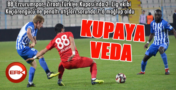 ERKHABER / ERZURUM - Ziraat Türkiye Kupası 4. Tur karşılaşmasında B.B. Erzurumspor sahasında Başkent ekibi Keçiörengücü’nü ağırladı. Normal süresi 1-1 eşitlikle sonuçlanan maç uzatmalara gitti. Uzatma dakikalarında her iki takım da birer gol atarak uzatma devresinden 2-2’lik skorla ayrıldı. Penaltıları 5-4 kazanan Keçiörengücü, üst tura çıkan takım oldu.