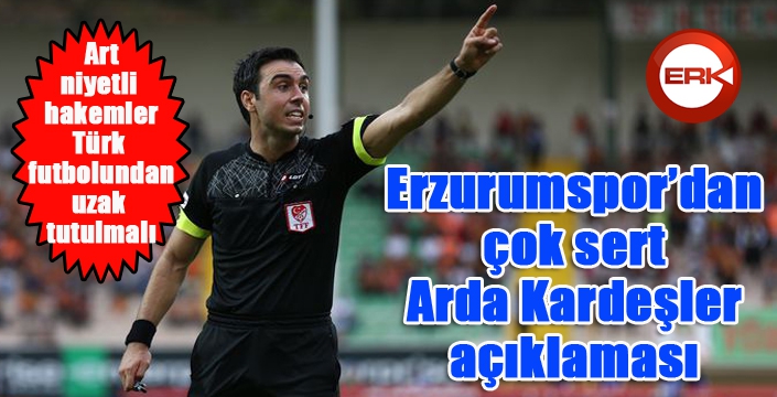 ERKHABER / ERZURUM - BB Erzurumspor'dan çok sert Arda Kardeşler açıklaması geldi. Kulüpten yapılan açıklamada, " TFF'den, art niyetli hakemleri Türk Futbolundan uzak tutmalarını rica ederiz" ifadelerine yer verildi.