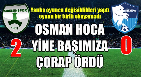 ERKHABER / ERZURUM - TFF 1. Lig mücadelesinde lig ikincisi Giresunspor’a konuk olan BB Erzurumspor hiçbir varlık gösteremediği maçta 3 puan bıraktı. Mavi-beyazlılar ilk yarısı 0-0 biten maçın ikinci yarısında yediği gollerle karşılaşmadan 2-0 mağlubiyetle ayrıldı.