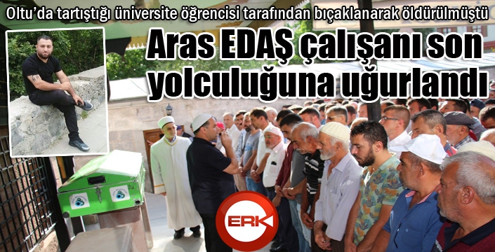 ERKHABER / ERZURUM - Erzurum’un Oltu ilçesinde tartıştığı üniversite öğrencisi tarafından bıçakla yaralanan ve kaldırıldığı hastanede hayatını kaybeden Aras EDAŞ çalışanı Orhan Kartal (36) son yolculuğuna uğurlandı.
