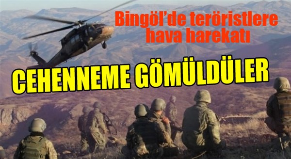 ERKHABER / ERZURUM - Türk Silahlı Kuvvetleri (TSK), 1 Temmuz 2017 tarihinde öğlen saatlerinde Bingöl kırsalında birliklere saldırı hazırlığında oldukları keşif ve gözetleme vasıtalarıyla tespit edilen bölücü terör örgütü mensuplarına yönelik Türk Hava Kuvvetlerine ait savaş uçakları ile hava harekatı düzenledi. Teröristlerce kullanılan 2 hedef (barınma yeri ve silah mevzii) imha edilirken, bölgede arama tarama faaliyetlerine devam edilmekte olduğu bildirildi.