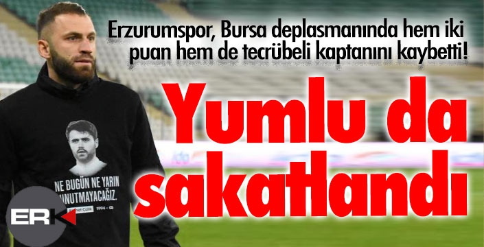 ERKHABER / ERZURUM - TFF 1. Lİg'de şampiyonluk mücadelesi veren ve son haftalarda sakatlıklarla boğuşan Büyükşehir Belediye Erzurumspor'dan bir sakatlık haberi daha geldi. Dün deplasmanda Bursaspor ile 0-0 berabere kalınan maçı sakat sakat tamamlayan Mustafa Yumlu'nun hafta sonundaki Bandırmaspor maçında oynamasının zor olduğu öğrenildi.