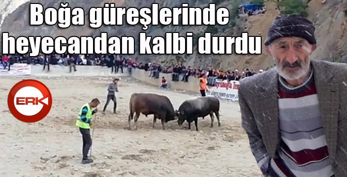 ERKHABER / ERZURUM - Erzurum'un İspir ilçesinde düzenlenen boğa güreşlerini izleyen 87 yaşındaki Kibar Durmuş boğası yenilince heyecandan duvardan düşüp kalp krizi geçirdi.