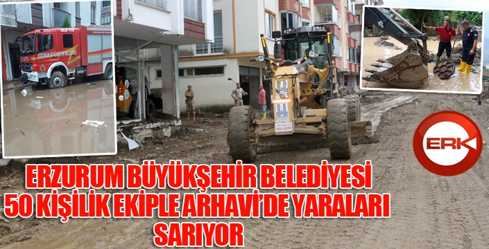 ERKHABER - ERZURUM - Erzurum Büyükşehir Belediyesi sel felaketinin yaşandığı Arhavi’de ortaya koyduğu çalışmalarla her kesimden takdir gördü. Selin yaşandığı an sosyal medya hesabından bölgeye Erzurum Büyükşehir Belediyesi ekiplerinin gönderildiğini ifade eden Büyükşehir Belediye Başkanı Mehmet Sekmen’in talimatıyla Arhavi’de konuşlanan 50 kişilik ekip bölgede canla başla görev yaptı.