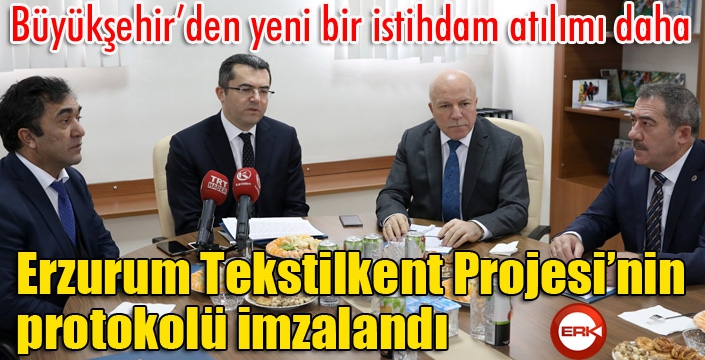ERKHABER / ERZURUM - Erzurum Büyükşehir Belediyesi yeni bir istihdam projesine daha start verdi. Cazibe Merkezlerini Destekleme Programı kapsamında hazırlanan ve Erzurum Büyükşehir Belediyesi ile 2. Organize Sanayi Bölgesi işbirliğinde gerçekleştirilecek olan Erzurum Tekstilkent Projesi’nin protokolü imzalandı.