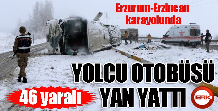 ERKHABER / ERZURUM - Kar ve tipinin etkili olduğu Erzincan’da buzlanan yolda sürücüsünün kontrolünden çıkan yolcu otobüsü yan yattı. Kazada 46 yolcu, yaralandı.